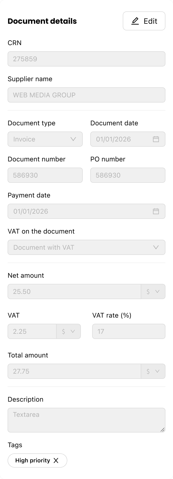 Doxbox automatically checks invoice data for accuracy. If something looks off, it flags it for your review. Smart matching connects invoices to POs and receipts, ensuring everything adds up before approval