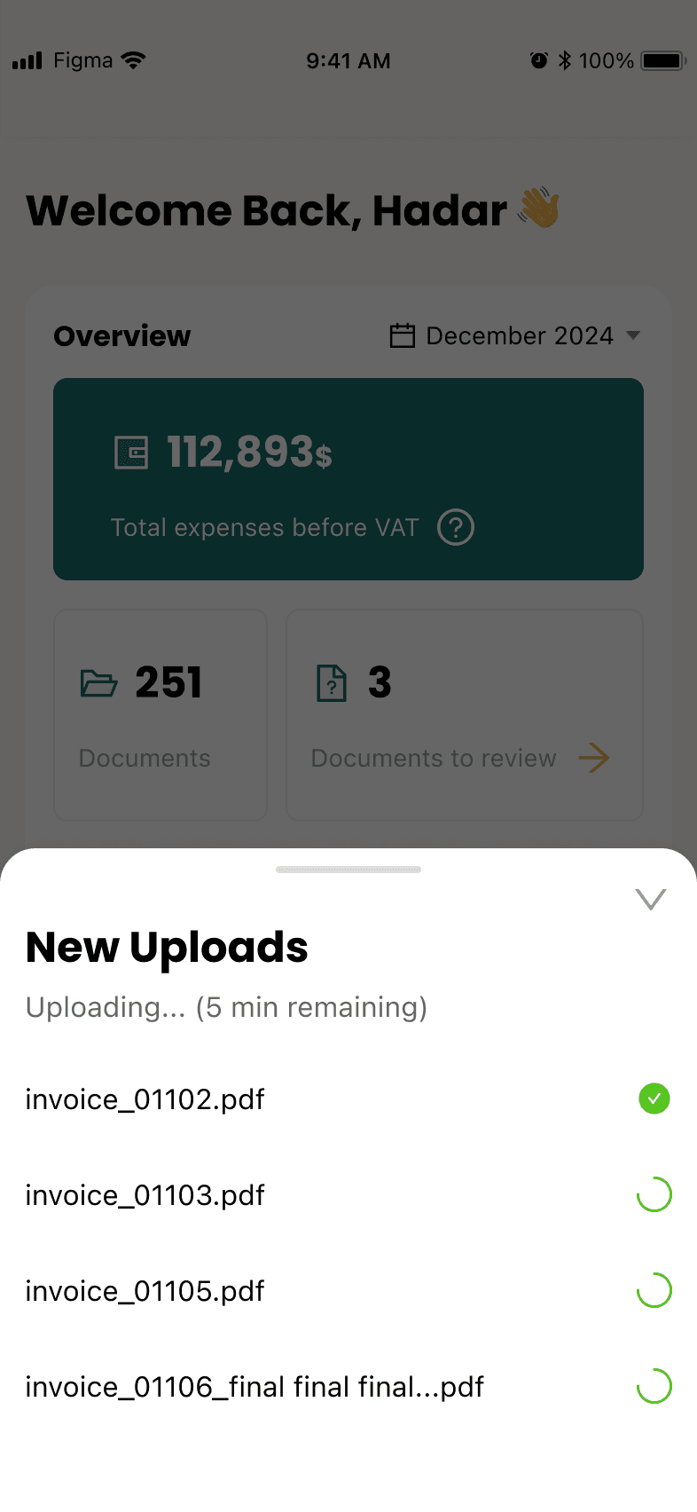 Our AI reads each invoice, extracts the key details, and organizes everything – no hassle. Vendor names, amounts, dates, line items, tax details – all captured automatically and classified into the right categories