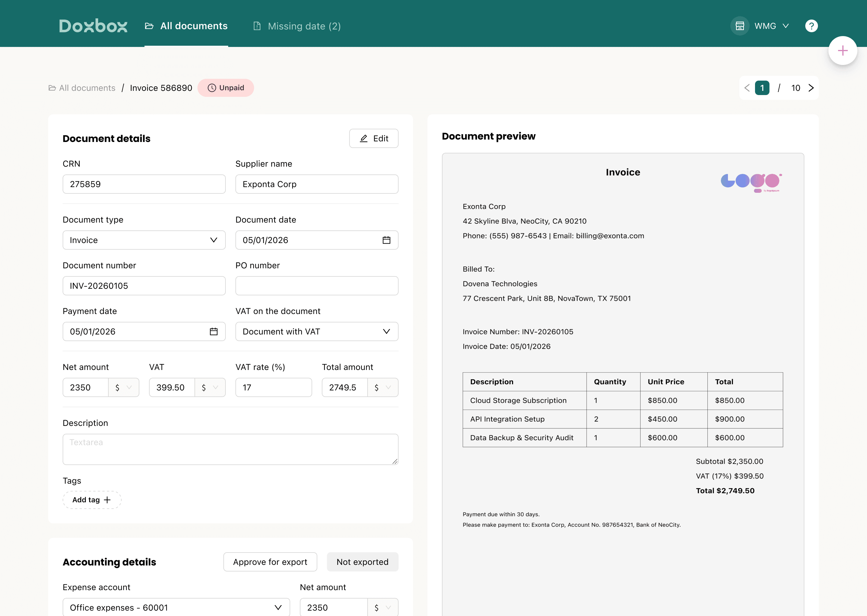 Let Doxbox's AI-powered extraction and auto-categorization organize your expenses automatically. watch data flow seamlessly into your systems